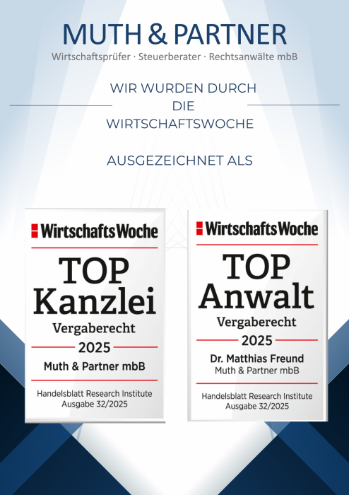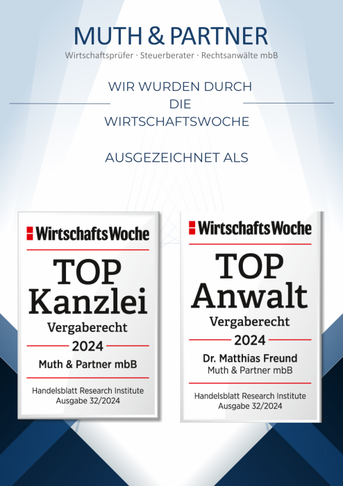 - Die Muth & Partner mbB sowie MP konform GmbH unterstützt Sie umfangreich und mit höchster Qualität bei der Vorbereitung und Durchführung von Ausschreibungen (Abwicklung der gesamten Ausschreibung über elektronische Vergabeplattformen) von Bau-, Liefer- und Dienstleistungsaufträgen sowie Konzessionen